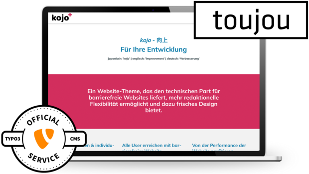 - Theme konfigurieren: Legen Sie den Grundstein für Ihre Website! Wählen Sie ein toujou-Theme, fügen Sie Ihr Logo hinzu, definieren Sie Farben und Schriftart.
